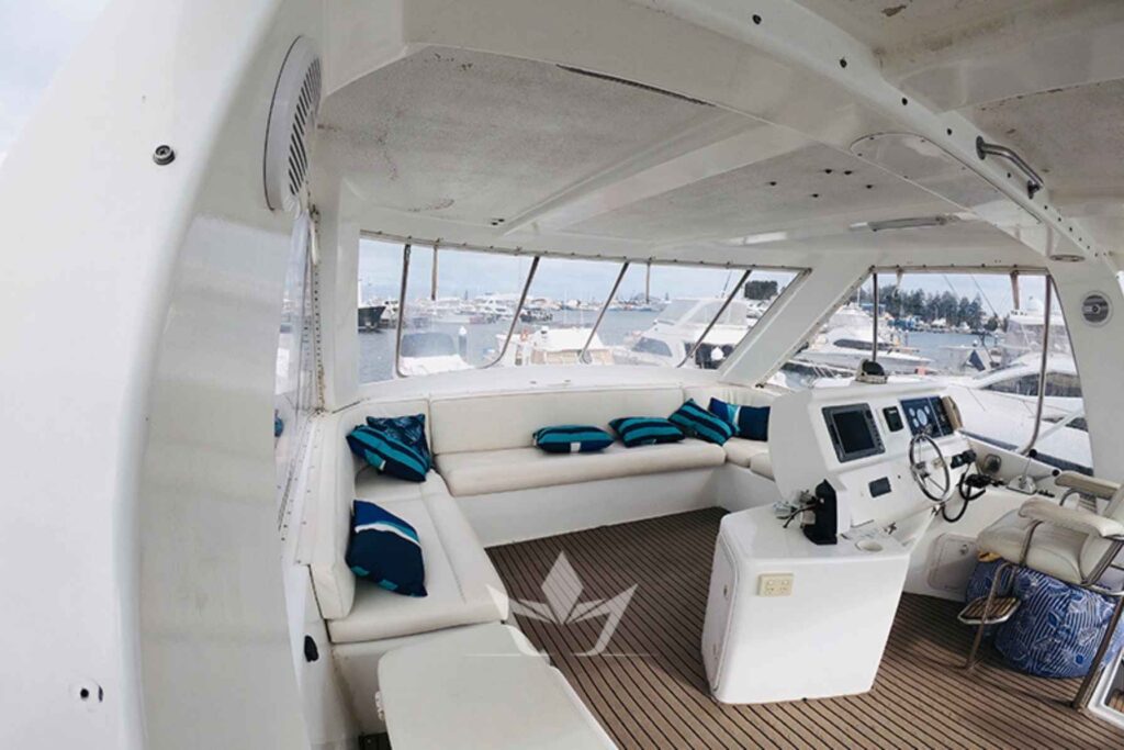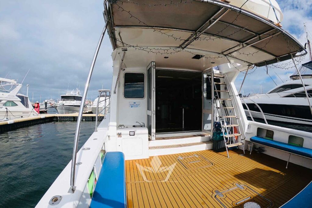 Australia Blue is a large open-plan luxury motor boat specifically made for charters at Sydney Harbour. Its large front and back decks offer plenty of space for all guests to have a great view of the beautiful Sydney harbour. Australia Blue also has a large saloon and fly bridge to keep you out of the sun.