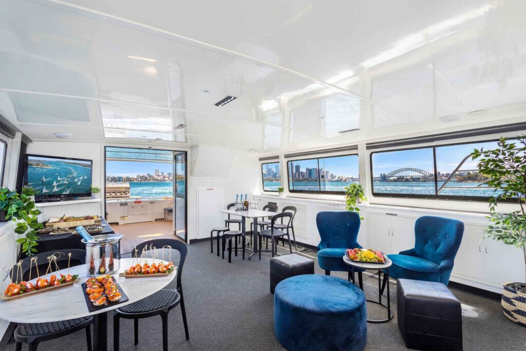 The vessel has modern, fresh furniture and décor throughout, and there is plenty of room on board to enjoy the harbour views and entertain guests.