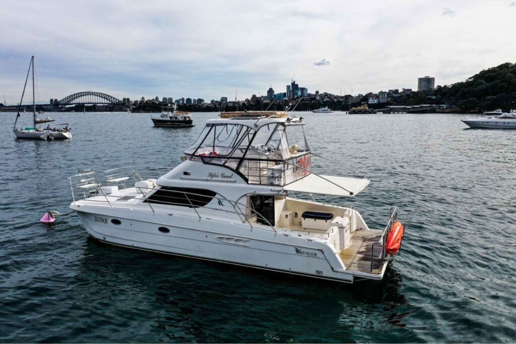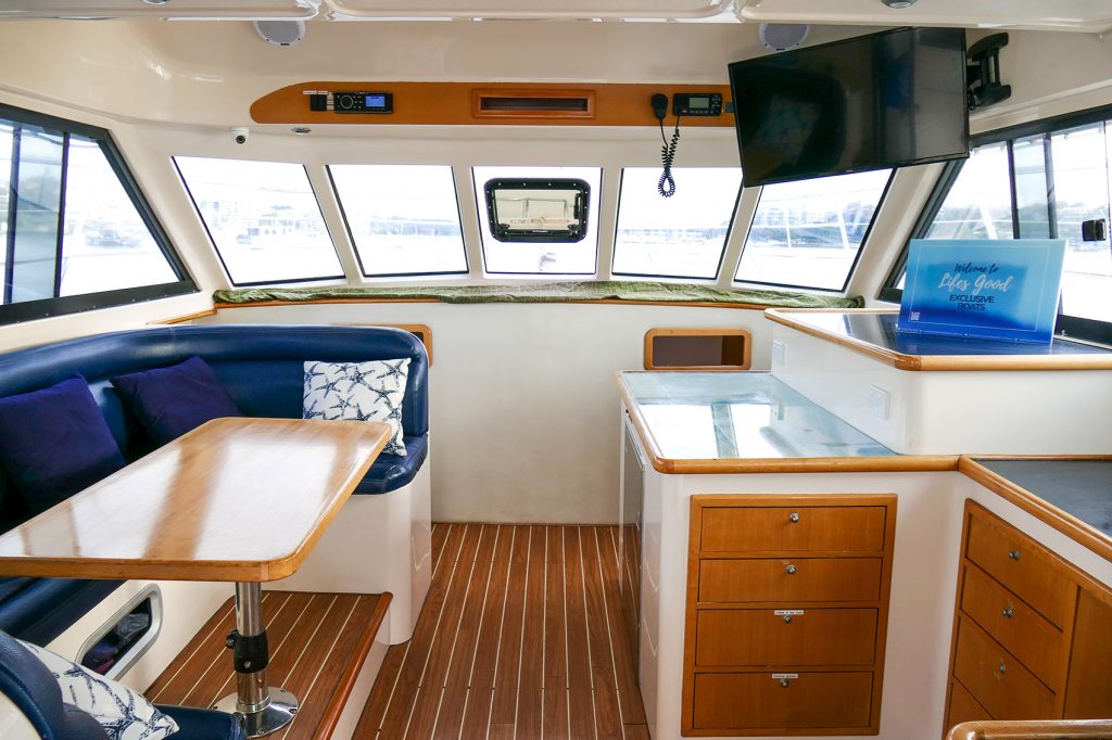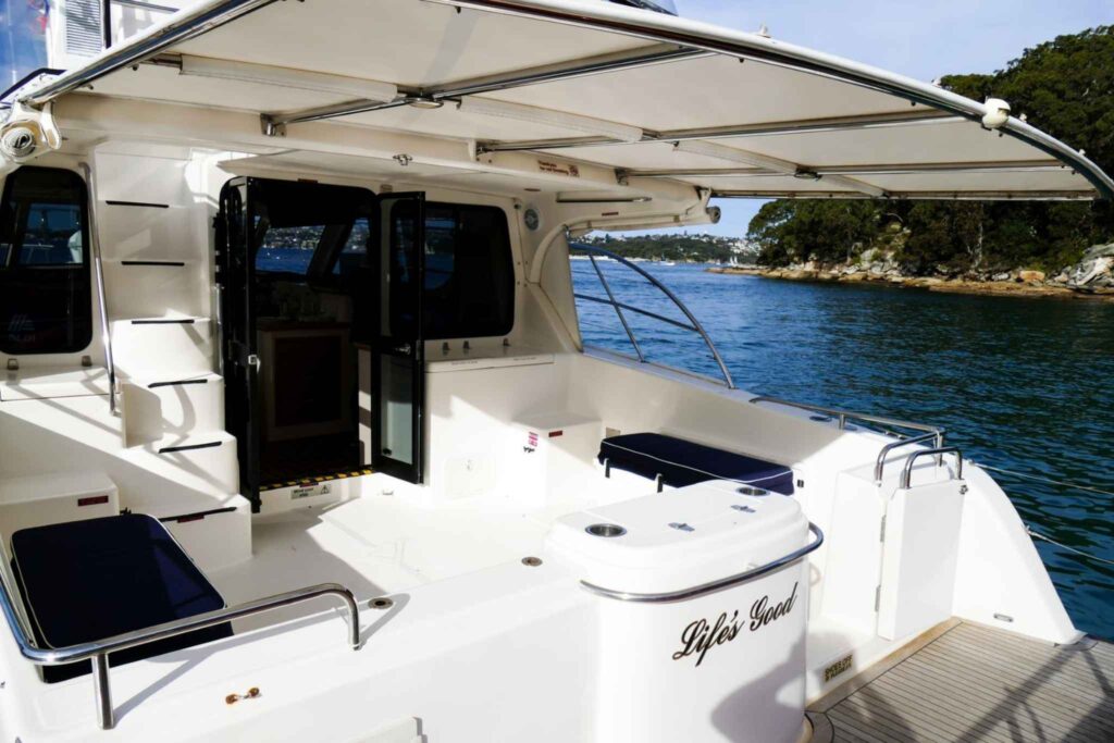 Life’s Good is a 12-metre premium catamaran built for summer fun on the harbour. There is a spacious sun deck front and back to take in all the sights of Sydney Harbour and a comfortable interior when you want to stay out of the sun. There is also a swim platform with a hot and cold shower for easy access to the water.